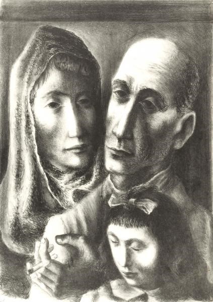 Для примера можно взять такие работы, как «Беженцы» (The Refugees), 1939 года или «Задние дворы» (Back of the Yards), 1938 года