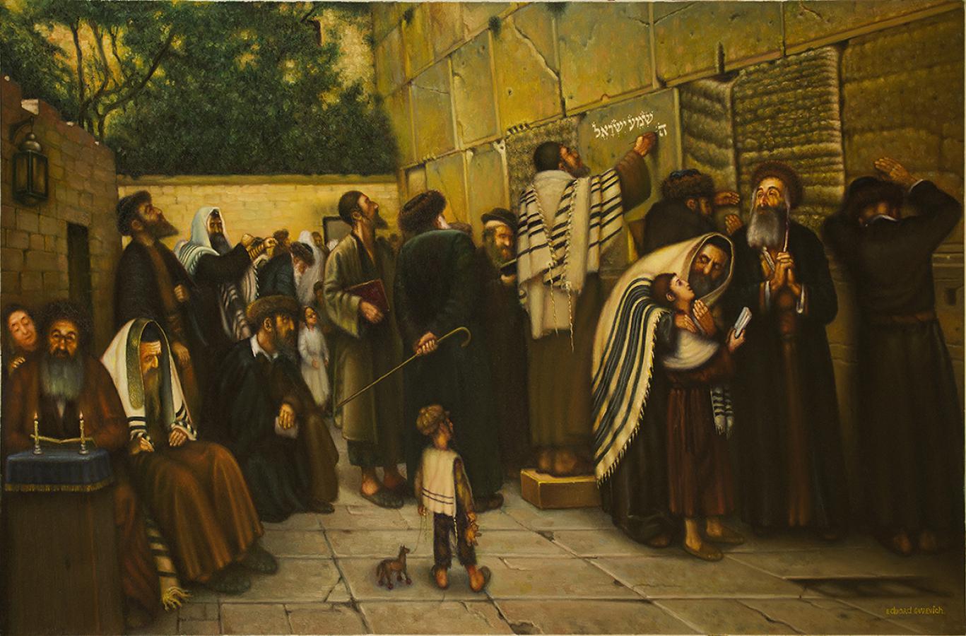 Старый Иерусалим. Паломники у Стены Плача. Послание на камне. холст, масло. Можно сделать копию этой картины, печать высокого качества на холсте.