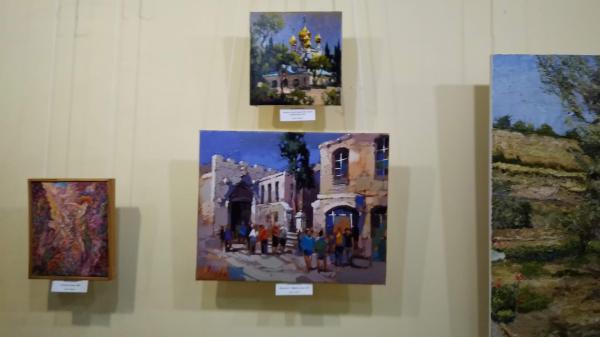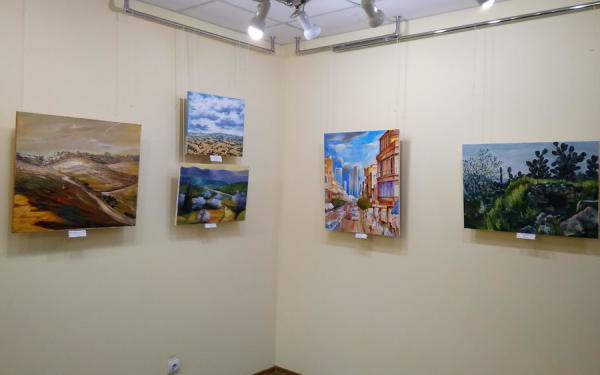В выставке представлены: «Рассвет в Иудейской пустыне» Ильи Хинича, «Берег Герцлии» Андриана Жудро, «Земля, текущая молоком и медом. Вид на Маале-Адумим» Аркадия Острицкого, «Ашдодские дюны» Германа Непомнящего, виды Тель-Авива, Яффо, озеро Кинерет.